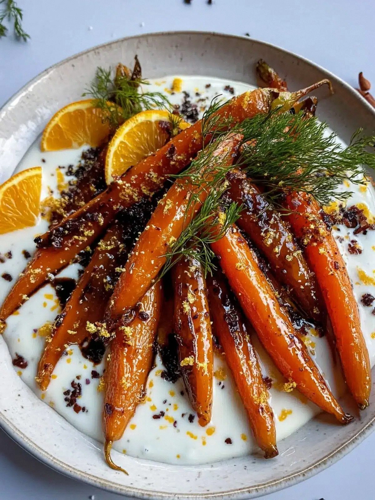 What makes this version stand out is that it isn’t just a side dish; it’s a flavor symphony where every component plays a distinct note. The carrots are not merely cooked—they are toasted to a golden caramel that cracks with a satisfying snap, like a crisp autumn leaf. The sauce is a glossy, velvety coating that clings to each carrot, delivering a burst of umami and citrus in every bite. The finish? A drizzle of creamy orange‑tahini yogurt that melts into a silky, tangy finish, turning the plate into a masterpiece.