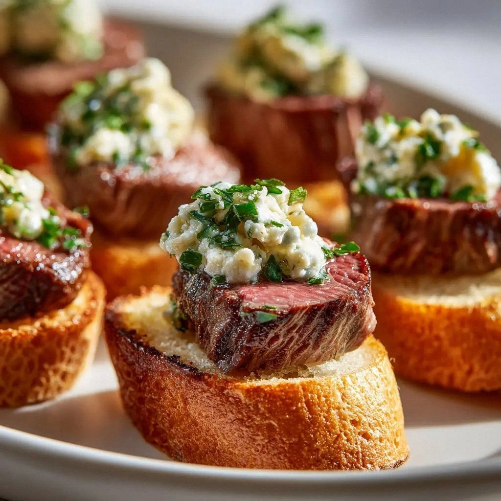 Let me paint the scene: the baguette slices sizzle in hot olive oil, turning a golden brown that crackles like a tiny applause. The aroma of seared beef mingles with the sharp tang of horseradish, filling the kitchen with an invitation you can’t ignore. The first bite delivers a buttery crunch that gives way to a succulent, melt-in-your-mouth steak, and the creamy sauce coats the palate like velvet. I swear, that moment when the sauce meets the crostini is pure culinary magic.