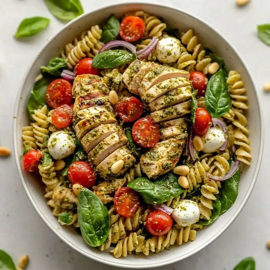 Fast forward to today, and I’ve discovered a version of chicken pesto pasta salad that feels like a culinary revelation. Imagine a bright, green pesto that coats each noodle like velvet, the chicken sliced into bite‑sized ribbons that melt in your mouth, and a splash of lemon that cuts through the richness like a razor. The cherry tomatoes burst with juice, the mozzarella or feta adds a creamy counterpoint, and the pine nuts crackle with toasted flavor. The whole dish sings a harmonious symphony of textures and tastes that you can’t help but want to taste again.