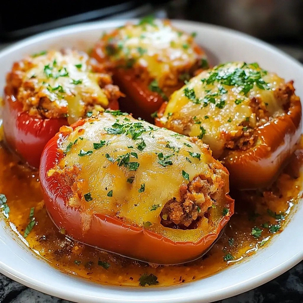 Add a tablespoon of balsamic reduction to the sauce and top the peppers with a drizzle of honey before baking. The sweet glaze caramelizes, giving the dish a glossy finish that’s both sweet and savory.