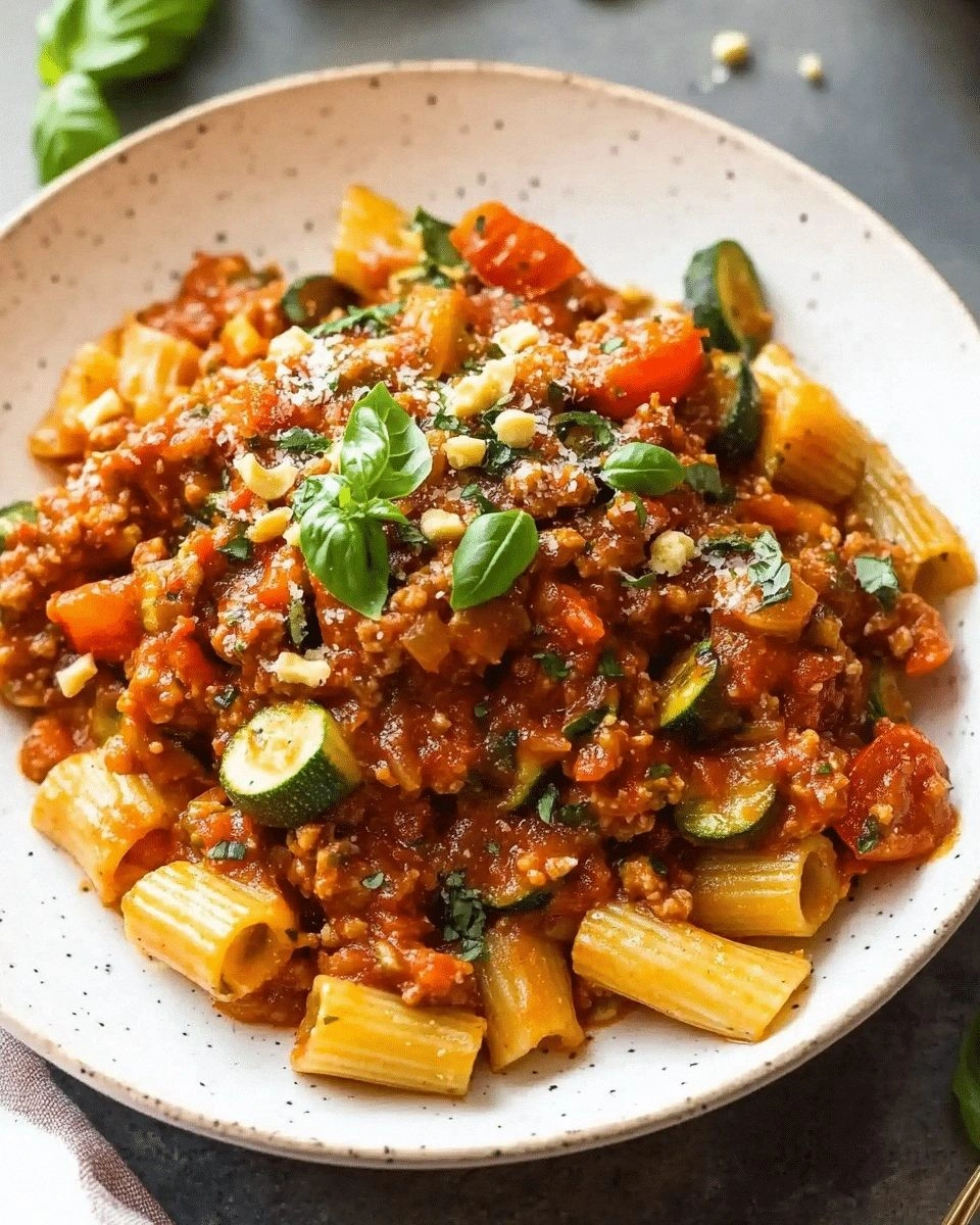 And there’s a twist you won’t see in most bolognese recipes: a splash of dry red wine added right after the tomatoes, followed by a dash of fresh basil at the very end. That simple addition lifts the sauce into something that feels both rustic and refined. Let me walk you through every single step — by the end, you’ll wonder how you ever made it any other way.